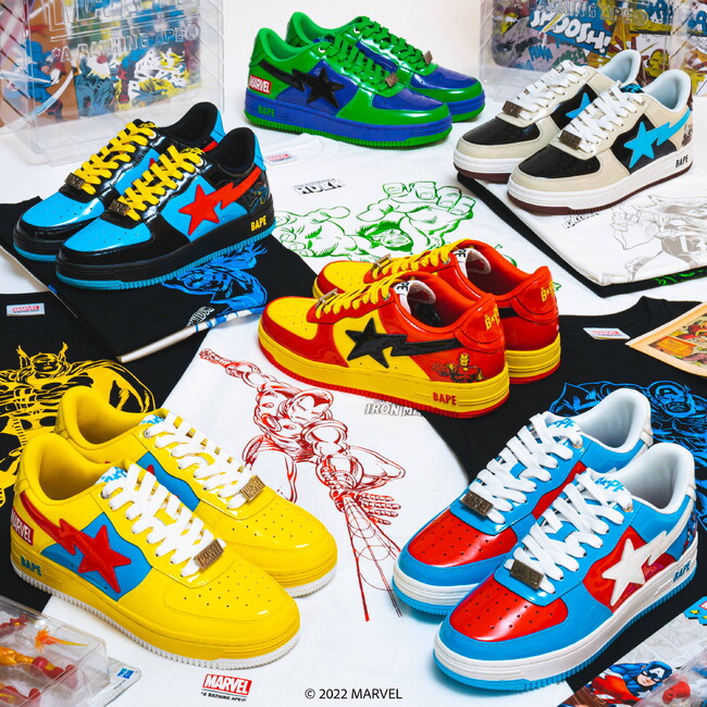 最新コレクションでは、アイアンマンやキャプテン・アメリカをはじめ、ハルク、ソー、ロケット・ラクーン、ブラック・ウィドウにスポットライトを当て、BAPE STA™に更なるアップデートを施しました。