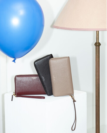 左から、THE MONOGRAM JACQUARD CONTINENTAL WRISTLET WALLET ¥30,800 /THE SLIM 84 BIFOLD WALLET ¥23,100 /THE SLIM 84 TOP ZIP WRISTLET ¥19,800 /THE SLIM 84 COLORBLOCK ZIP CARD CASE ¥15,400