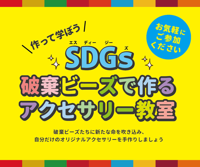 廃棄ビーズを使ってアクセサリーを作る事ができる「手作り教室」を開催します。