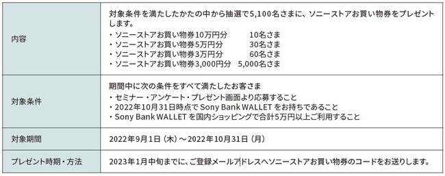 ソニー銀行株式会社(代表取締役社長:南 啓二/本社:東京都千代田区/以下 ソニー銀行)は、2022年9月1日(木)より、「Sony Bank WALLET 発行100万枚突破記念」キャンペーンを実施しますのでお知らせいたします。