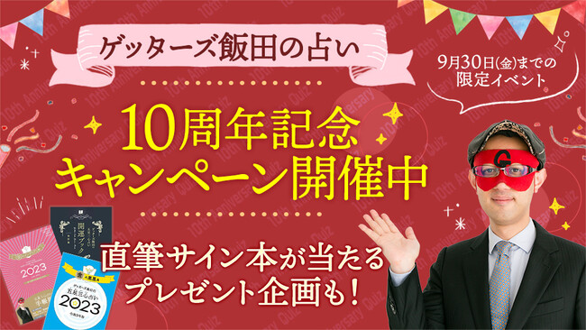 【ゲッターズ飯田の占い】10周年記念キャンペーンを開催!9月限定のデザインと記念コンテンツの配信を開始