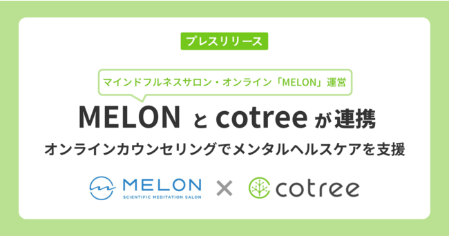 オンラインカウンセリング・コーチングの「cotree(コトリー)」を展開する株式会社cotree(本社:東京都港区、代表取締役:西岡 恵子、以下cotree)は、マインドフルネスのプラットフォーム「MELON(メロン)」を運営する株式会社Melon(本社:東京都港区、代表取締役 CEO:橋本 大佑、以下MELON) と2022年9月1日(木)より連携を開始しましたことをお知らせいたします。