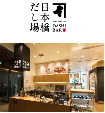 日本橋だし場 本店は、2010年のCOREDO室町1開業に際し、だしを知る・楽しむ・味わう場、だしコミュニティとしてオープンした鰹節専門店にんべん初の飲食業態です。1杯100円で本格的なだしが味わえる「かつお節だし」が人気を集め、本物のだしの美味しさに出会える場、だし専門店としてたくさんのお客様にご愛顧いただいております。