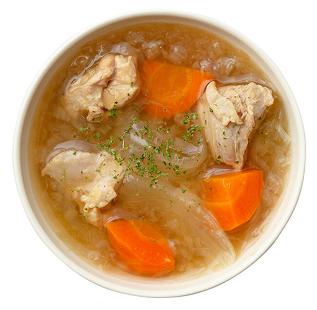 炒め玉ねぎと鶏肉のだしスープ
