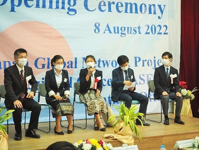 開所式では、出席者と本学関係者による情報交換会も実施し、ラオスからの日本留学事情、日本での留学生受入体制などについて活発な議論が交わされました。情報交換会には、ラオス元日本留学生協会よりPhoutsada CHONEPHETSALATH氏、在ラオス日本国大使館より西村祐輝三等書記官、サラワン教員養成校より本学の卒業生でもあるSouliphone SIVIXAY氏がパネリストとして登壇しました。