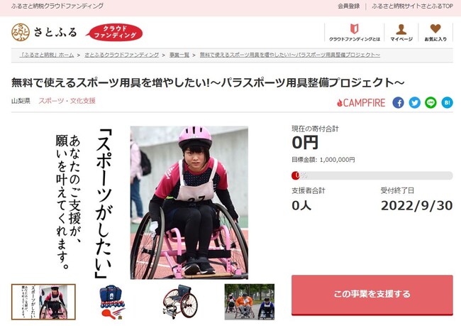 山梨県とさとふる、パラスポーツ用具整備や中学生のデジタルデトックスのため、寄付受け付けを開始