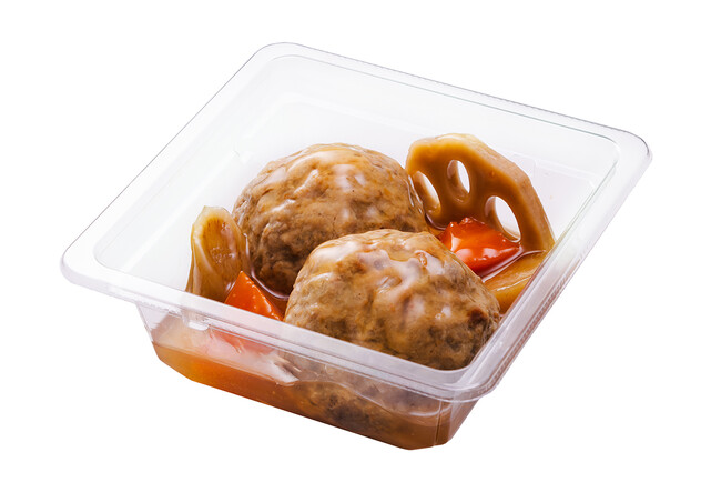 大きな鶏だんごを使用し、甘酢あんをたっぷりとかけて、