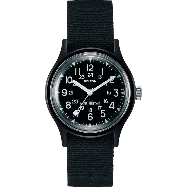 手巻き(35時間リザーブ)| 36mm径ABS樹脂製ケース | アクリル風防 | ナイロン製ストラップ | 日常生活防水
