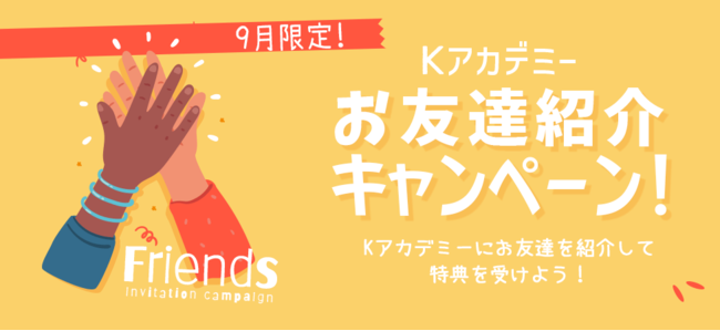 オンライン韓国語スクール「K-アカデミー」9月限定:お友達紹介キャンペーン実施中!