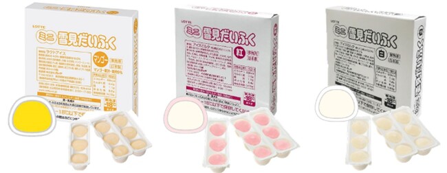 業務用でしか食べられない「業務用ミニ雪見だいふく マンゴー」味が新登場!「紅」「白」もおもち部分が「弾むぷにぷにモチ」となってリニューアル発売します!