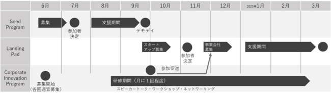 Accelerate Aichi by 500 Globalでは、Seed Programに加え、愛知県内の企業のビジネスユニットやイノベーションチーム向けに企画された「Corporate Innovation Program(コーポレート・イノベーション・プログラム」と、海外スタートアップを対象とした8週間のアクセラレータプログラムである「Landing Pad (ランディング・パッド)」も実施しています。本年度の3つのプログラムはいずれも、愛知県内で成功するスタートアップを生み出し、イノベーションを促進し、エコシステムを成長させることを目的としています。