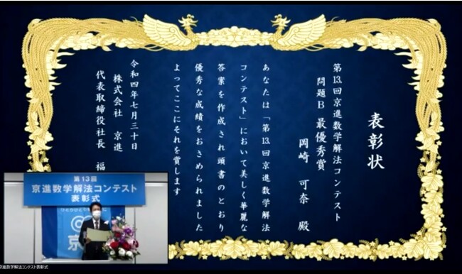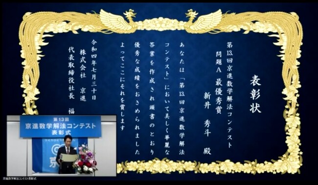 最優秀賞は、2022年国際数学オリンピック日本代表として銀メダルを獲得した高校生 第13回 京進数学解法コンテスト 入賞者発表