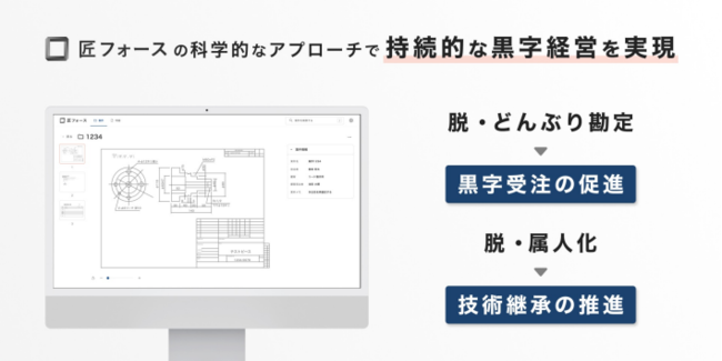 LeadXは、部品メーカーが、誰でも迅速に適切な値決めができる『匠フォース』(特許出願中)を提供します。「脱・属人化」「脱・どんぶり勘定」を実現し、持続的な⿊字経営を支援します。 『匠フォース』の導入により、業務効率化はもちろん、⾚字案件の撲滅や技術継承の推進など、月間数十万円以上の利益改善効果を見込んでいます。