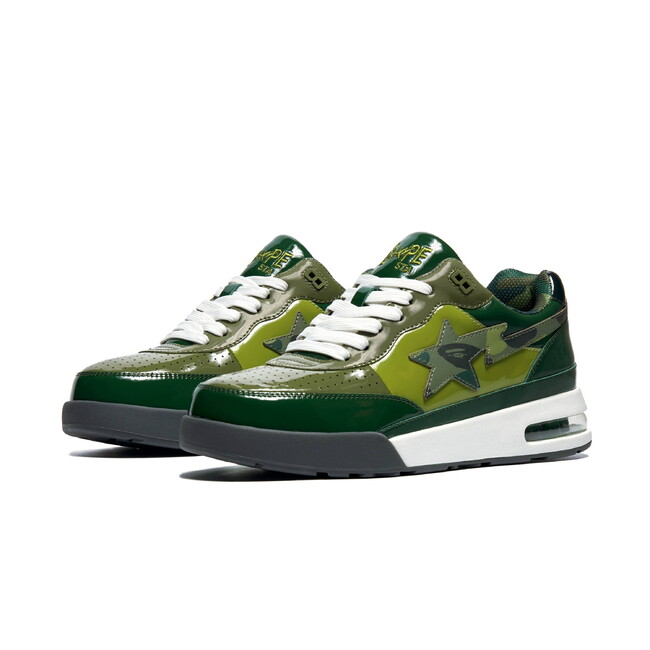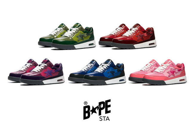 BAPE(R) ROAD STAより、BAPE(R) CAMO鮮やかなパテントレザーでまとめ上げた新作が登場。