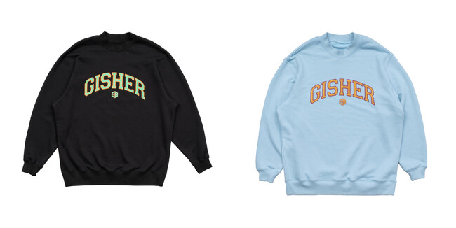 今回のポップアップストアでは、カレッジロゴスウェットトップスをはじめ、オリジナルフーディやスタジアムジャンパーなどの新作コレクションのほか、本イベント限定ノベルティのトートバッグのほか、オンラインストアで好評販売中のGISHERの1stアイテムを店頭にて全品30%0FFにて販売予定です。