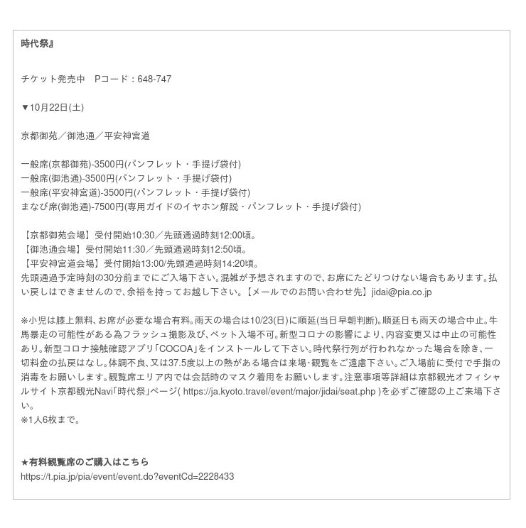 3年ぶりに開催される『#時代祭』の有料観覧席発売中!