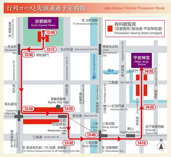 京都御苑、御池通、平安神宮道に行列をゆっくり見られる有料観覧席が設置される。一般席はパンフレット・手提げ袋付、まなび席(御池通)はパンフレット・手提げ袋に加え専用ガイドのイヤホン解説付となっている。チケットは発売中。