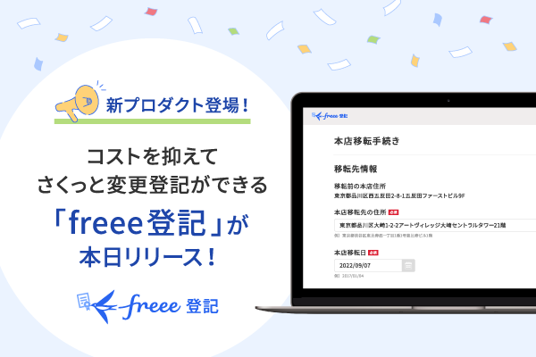 ・9月7日より法人の変更登記書類をオンラインで作成できる「freee登記」を本日からfreeeユーザー限定で提供開始します