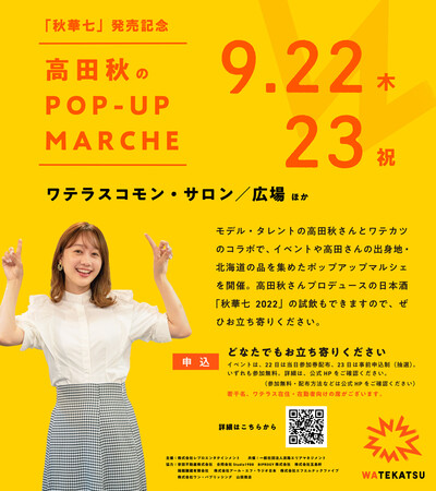 弊社所属の高田秋(たかだ・しゅう/30)が自身のプロデュースする「秋華七 2022」の発売を記念し、「高田秋のPOP-UP MARCHE」をワテラスにて開催することが決定しました。