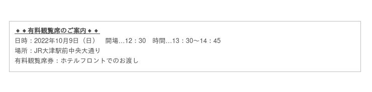 ◆大津祭曳山巡行有料観覧席付き宿泊プラン 販売概要◆