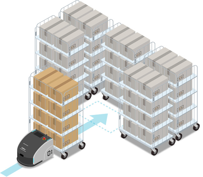 物流施設でカゴ車の工程間搬送や整列配置の自動化を実現する自律移動ロボット「ORV(オーアールブイ)」を発売