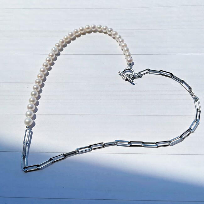 左:淡水真珠 ハーフチェーンネックレス 6.5-7.0mm SUS316L ¥8,800(税込)