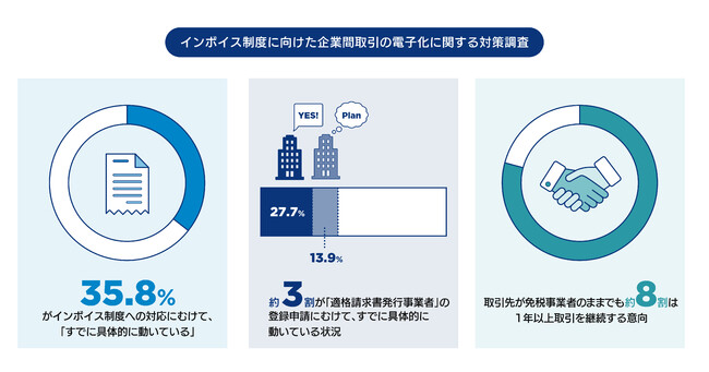 〈大企業を中心としたインボイス制度対策状況を調査〉インボイス制度対応中は35.8%、取引先が免税事業者のままでも約8割は1年以上取引を継続する意向