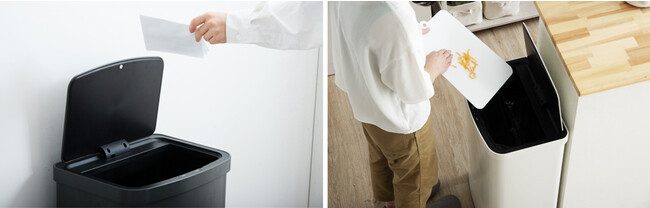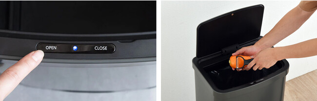 更にタッチ操作で開閉することも可能な仕様になっており、最大10分間開いた状態をキープできることから、ゴミ箱を開いたままの作業などにも適応しております。