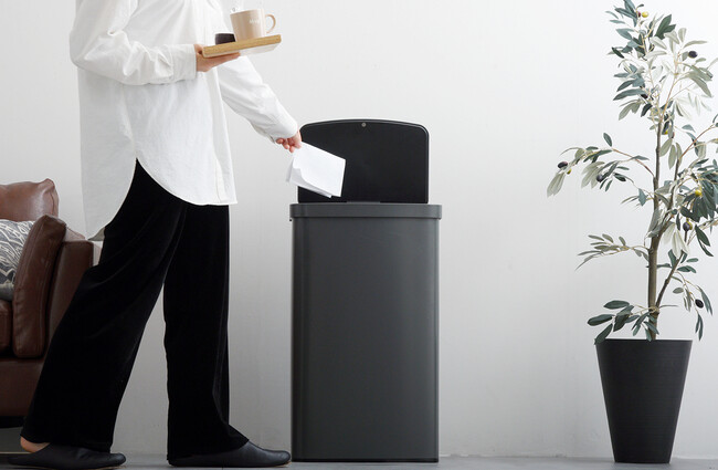 一般的なフタ付きのゴミ箱には、手でフタを開き、ゴミを捨てた後もフタを手で閉める「手動式」や、足でペダルを踏むとフタが開き、ペダルから足を離すとフタが閉まる「ペダル式」などがあります。