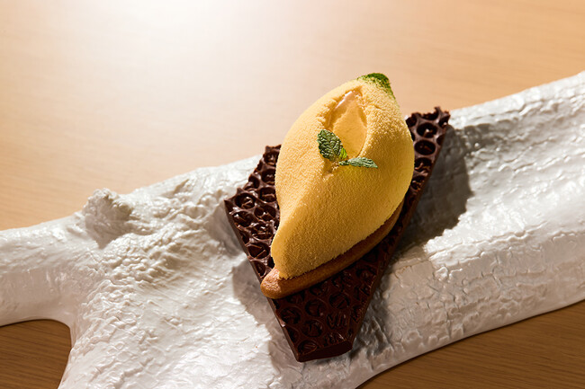 オレンジの花言葉に由来し、3層の食感が楽しめるケーキ『オランジュショコラ ピュア』をご用意しております。その他、ホテルの屋上で採取したはちみつを使ったケーキ『ハニーレモン・フロマージュ』もラインナップ。