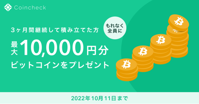 コインチェック株式会社(本社:東京都渋谷区、代表取締役:蓮尾 聡)が提供する暗号資産積立サービス「Coincheckつみたて」では、2022年9月10日より、積立金額に応じて最大1万円相当のBTCがもらえる「秋のキャッシュバックキャンペーン」を実施します。本キャンペーンは、新規のお客様だけではなく、現在積立中のお客様や一度「Coincheckつみたて」を停止されたお客様もご利用いただけます。