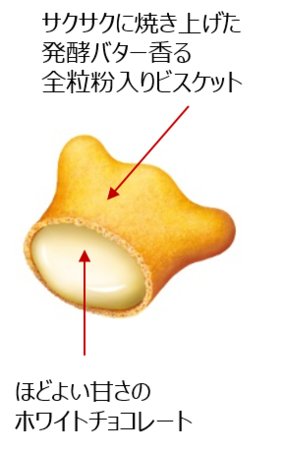 サクサクに焼き上げた、発酵バターが香る全粒粉入りビスケットの中に、ほどよい甘さのホワイトチョコレートをイン。深い味わいが楽しめます。