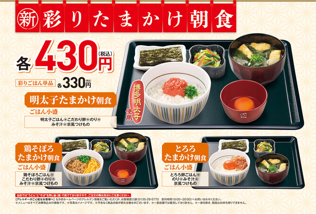【なか卯】いつもの朝食に彩りを!なか卯の朝食メニューに「彩りたまかけ朝食」シリーズが新登場!