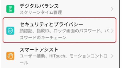 まずは、HUAWEIスマホでPINコードを初期設定する方法を見てきましょう。PINコード設定するとセキュリティが強化されるため安心です。