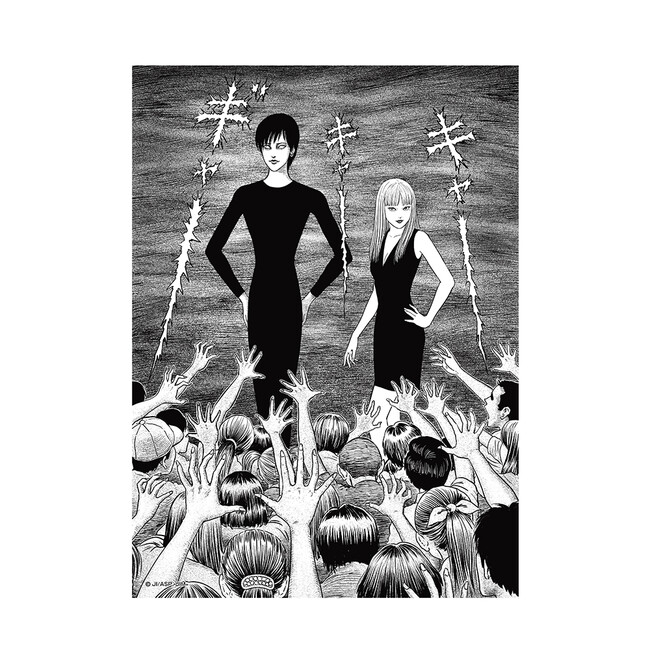 2023年にNetflixでの世界独占配信が決定した「伊藤潤二『マニアック』」でアニメ化される作品をはじめ、伊藤潤二先生の代表作の複製画が並ぶ。