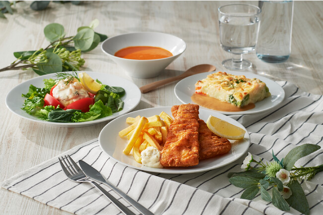 今回すべてのメニューにMSC認証*の素材を使った、サステナブルなシーフードメニューを楽しめるフェアを開催します。白身魚のフライと、たっぷりのフライドポテトをのせたボリューム満点のフィッシュ&チップスや、スウェーデン伝統のスコーゲンをのせたサラダなど、イケアだからこそ楽しめるサステナブルな限定メニューをお楽しみください。