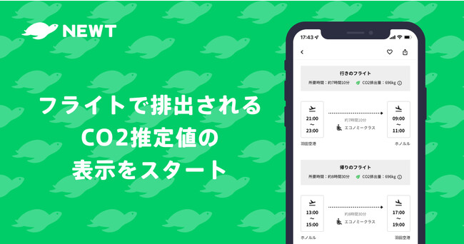 海外旅行予約アプリ『NEWT』、フライトで排出されるCO2推定値の表示スタート
