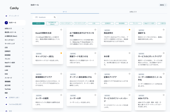 Catchyを活用することにより、資料作成、広告文、メール文、記事作成などの文章作成業務を効率化したり、企画立案におけるアイデアの幅を広げたりすることが可能です。