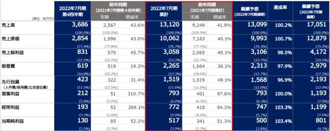 2022年7月期の決算説明資料は、9月26日に当社HPよりご案内予定です。