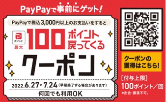 *クーポンはPayPayアプリから決済前に事前取得する必要があります。