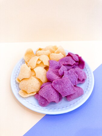 2019年からは黄色と紫色の2色の「おさつスナック」を期間限定で発売し、華やかな見た目と「2色のおさつスナック」ならではの味わいでご好評をいただいています。今年は2020年に発売した「2色のおさつスナック スイートポテト味」に続き、自社で実施したアンケート※1「好きなさつまいもの食べ方」で最も多く得票した「スイートポテト」をフレーバーに選定しました。バターの香りをパワーアップし、コクのあるバターの香りと、さつまいもの優しい甘さが楽しめる商品に仕上げています。