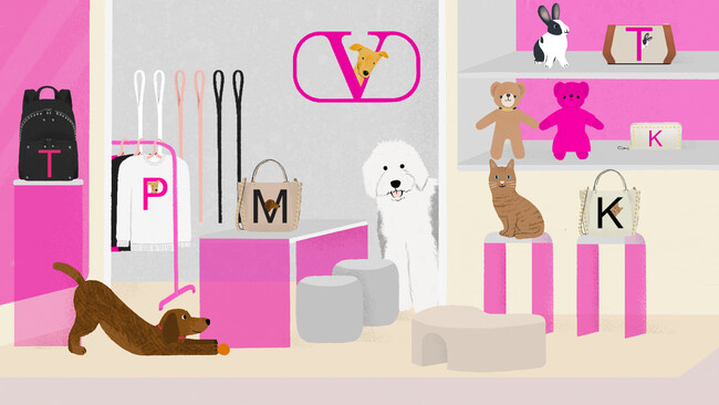 ヴァレンティノ ガラヴァーニ ‘ロックスタッズ ペット’ は、イタリアを拠点に活躍するアーティスト/イラストレーターのリカルド・クシマノが、お客様のイニシャルとともにペットのポートレートを描き、ヴァレンティノ ガラヴァーニのアイコン バッグやスウェットフーディなど、お好みの商品にデザインするパーソナライゼーションサービスです。通常はvalentino.com限定でオーダーを受け付けているこのサービス。本ポップアップストアは、店頭にて商品サンプルをご覧いただきながらオーダーいただける貴重な機会です。