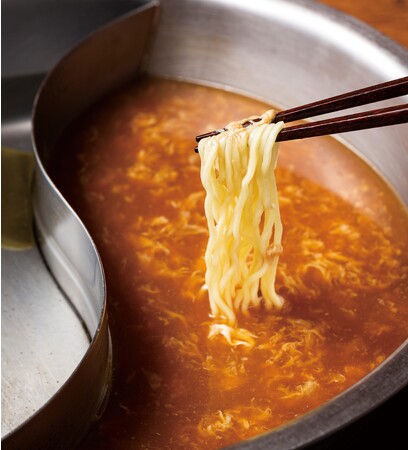 しゃぶしゃぶの〆(シメ)はお肉やお野菜のうま味が染み込んだおだしに生中華麺を入れていただき『酸辣湯麺(サンラータンメン)』風に。追加のたまごもお替りできますので、食欲に忠実に、ぜひ〆(シメ)までお楽しみください。