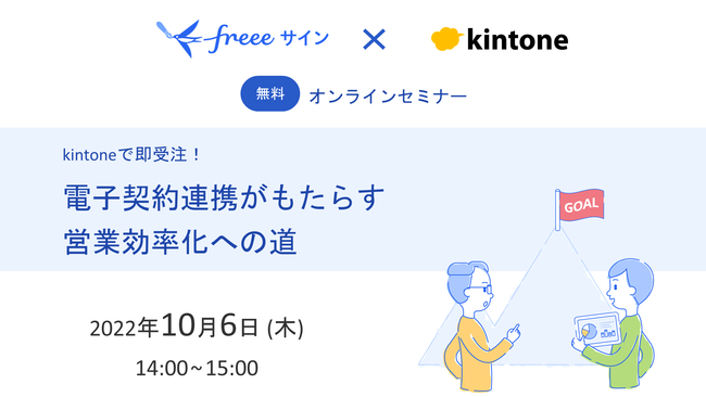 freee株式会社(本社:東京都品川区、CEO:佐々木大輔)のグループ会社であるfreeeサイン株式会社(本社:東京都品川区、代表取締役:鬼頭 政人)が提供する電子契約サービス「freeeサイン」では、2022年10月6日(木)14:00~15:00に、サイボウズ株式会社と共催でオンライン無料セミナー「kintoneで即受注!電子契約連携がもたらす営業効率化への道」を開催します。