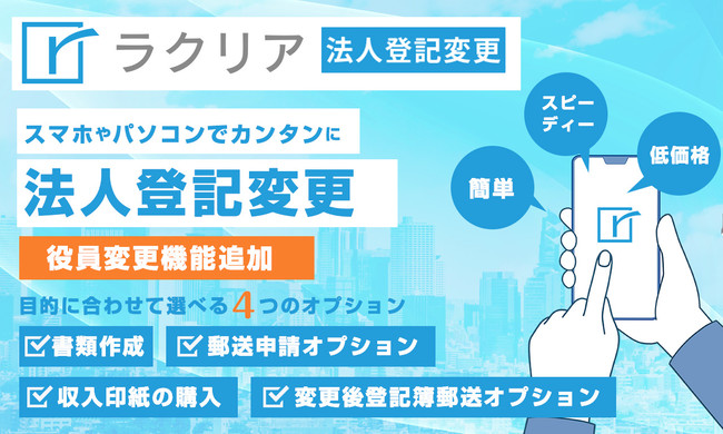 スマホやパソコンから簡単に法人登記変更「ラクリア法人登記変更」が「役員変更」に対応いたしました