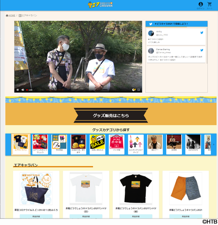 「水曜どうでしょうエアキャラバン2022」は、キャラバン出発前の9月10日(土)14時からおよそ2時間にわたり生配信で実施しました。今年はHTB本社があるさっぽろ創世スクエア公開空地とHTB1階エントランスの「onちゃんテラス」を舞台に、社内DXプロジェクトで手掛けてきたライブコマースシステムを活用し、生配信を楽しんでいただきながらオンラインで商品を販売。キャラバントラックを前に安全祈願式も生中継し、藤村・嬉野両Dによる、台本いらず?の予想のつかない進行でキャラバンの楽しみ方を紹介した。また、キャラバン隊とともに、毎回売り切れ続出の新グッズの先行オンライン販売も実施。恒例のHTBグッズ店長による 「てんちょショッピング」に加え、スタッフ手作りの「onちゃんリクエストムービー」の舞台裏の紹介、そして4年ぶりに開催される「水曜どうでしょうキャラバン」の開催地紹介など、盛りだくさんの内容をお伝えしました。