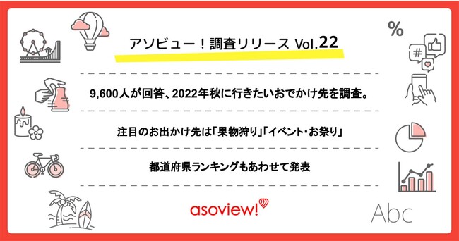 【アソビュー!調査リリース】9,600人が回答、2022年秋に行きたいおでかけ先を調査。注目のお出かけ先は「果物狩り」「イベント・お祭り」、都道府県ランキングもあわせて発表