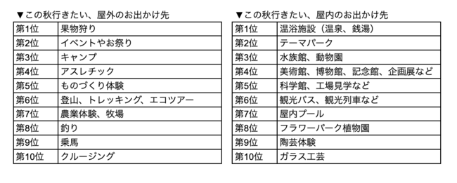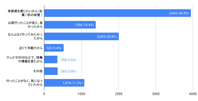秋のお出かけ先は季節感(紅葉や秋の味覚)を感じられるものが人気であることがランキングと選択理由から明らかになりました。