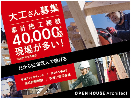 大工さん・施工業者さん大募集!受注拡大中のオープンハウス・アーキテクトがラジオ CM 放送開始