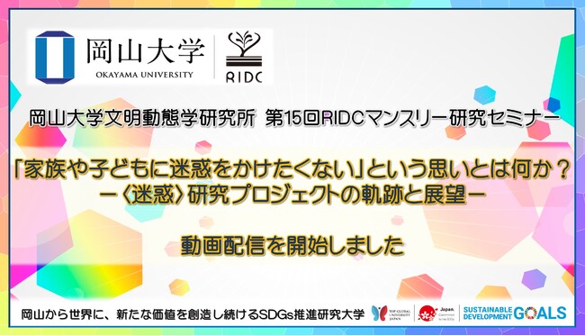 【岡山大学文明動態学研究所】「「家族や子どもに迷惑をかけたくない」という思いとは何か?-〈迷惑〉研究プロジェクトの軌跡と展望-」の録画配信を開始しました